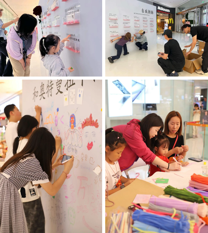 同期,在龙湖香醍天街,艺术研学成果惊艳亮相。展览中,大型空间装置、交互设计、地贴艺术以及艺术共创项目、“奥特曼扭个怪兽”“纸间筑梦师”“碎片美术馆”等格外吸睛。培华学子用艺术改变空间,为商业空间增添了浓厚的艺术氛围。