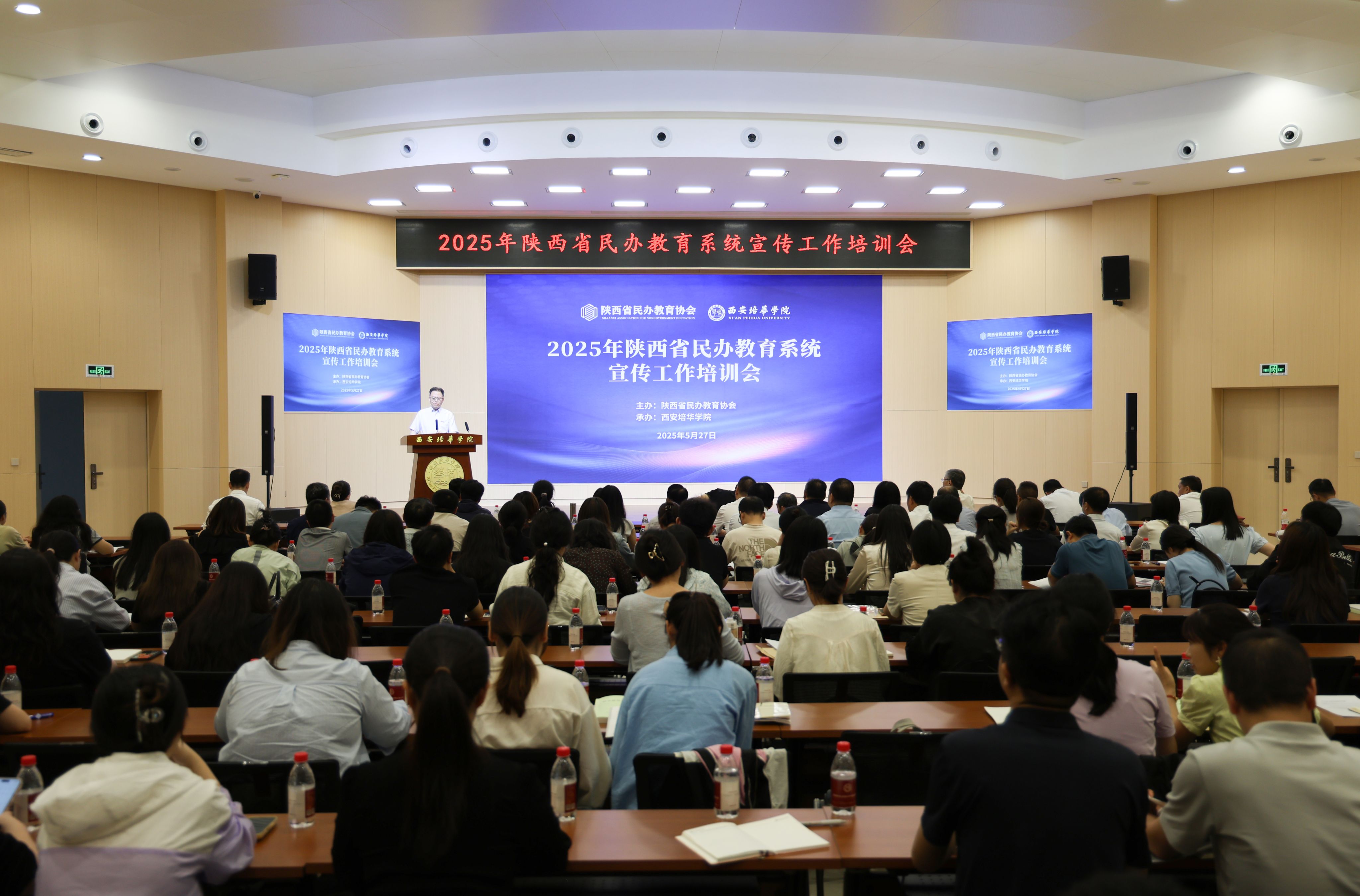 为提升陕西省民办教育系统宣传工作水平,进一步强化宣传队伍建设,5月27日,由陕西省民办教育协会主办,西安培华学院承办的“2025年陕西省民办教育系统宣传工作培训会”在西安培华学院长安校区举行。来自全省民办高校、中小学、幼儿园及教育培训机构等100余名宣传相关人员参加培训。本次培训旨在提升民办教育系统宣传工作人员的专业素养和业务能力,增强对政策法规的理解与把握,提高宣传工作的针对性和实效性,助力构建民办教育良好舆论生态,推动全省民办教育事业高质量发展。省民办教育协会会长郝利生,陕西教育融媒体中心主任徐进军、副主任冯丽,中国民办教育协会党建专业委员会副理事长、省民办教育协会党建专业委员会主任闵小平,汉中市民办教育协会会长杨兴保等领导及嘉宾出席会议。培训会开幕式由协会秘书长岳沛磊主持。