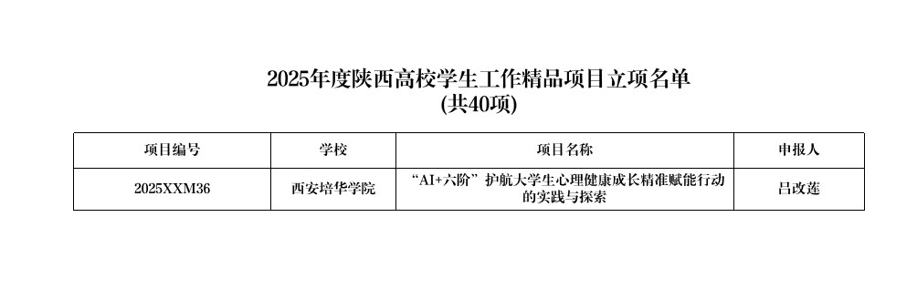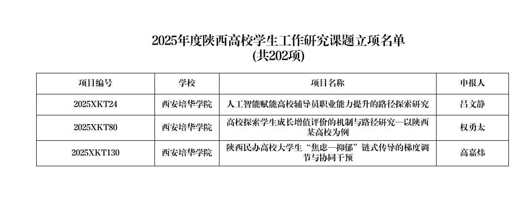 7月8日,中共陕西省委教育工委发布了《中共陕西省委教育工作委员会关于公布2025年度陕西高校学生工作精品项目和研究课题立项名单的通知》,学校申报的1项精品项目及3项研究课题全部获得立项,获批率达100%。