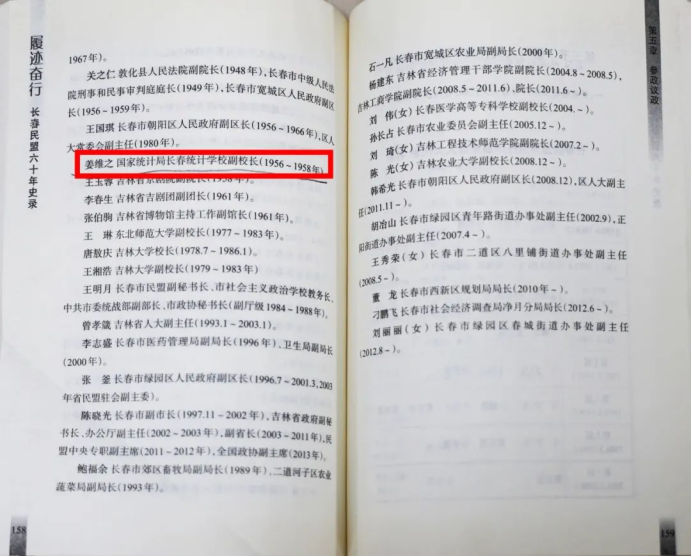 《长春民盟六十年史录》记录了姜维之校长担任国家统计局长春统计学校副校长