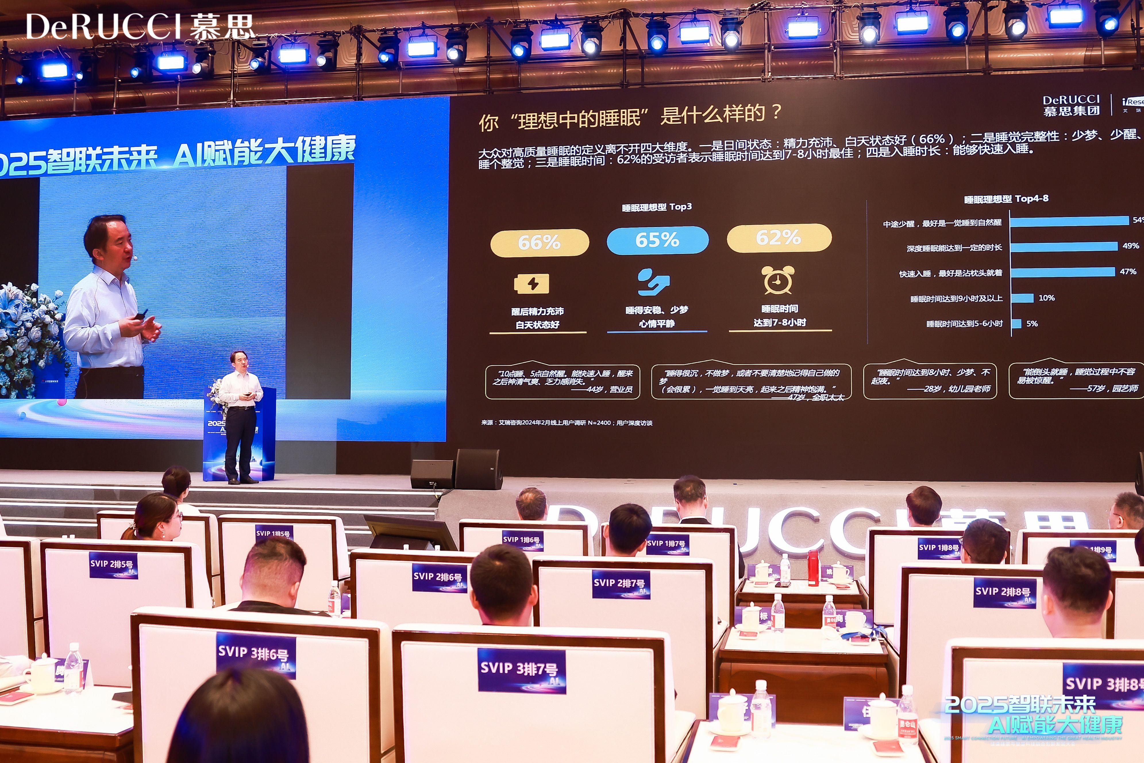 陕西省医学会精神医学分会会长、西安交通大学医学部副主任马现仓,欧洲自然科学院院士、华南理工大学教授魏坤先后进行主题演讲。他们围绕大健康领域前沿话题,从专业角度剖析现代生活方式对健康睡眠的影响,分享AI技术在健康睡眠领域的应用与展望。