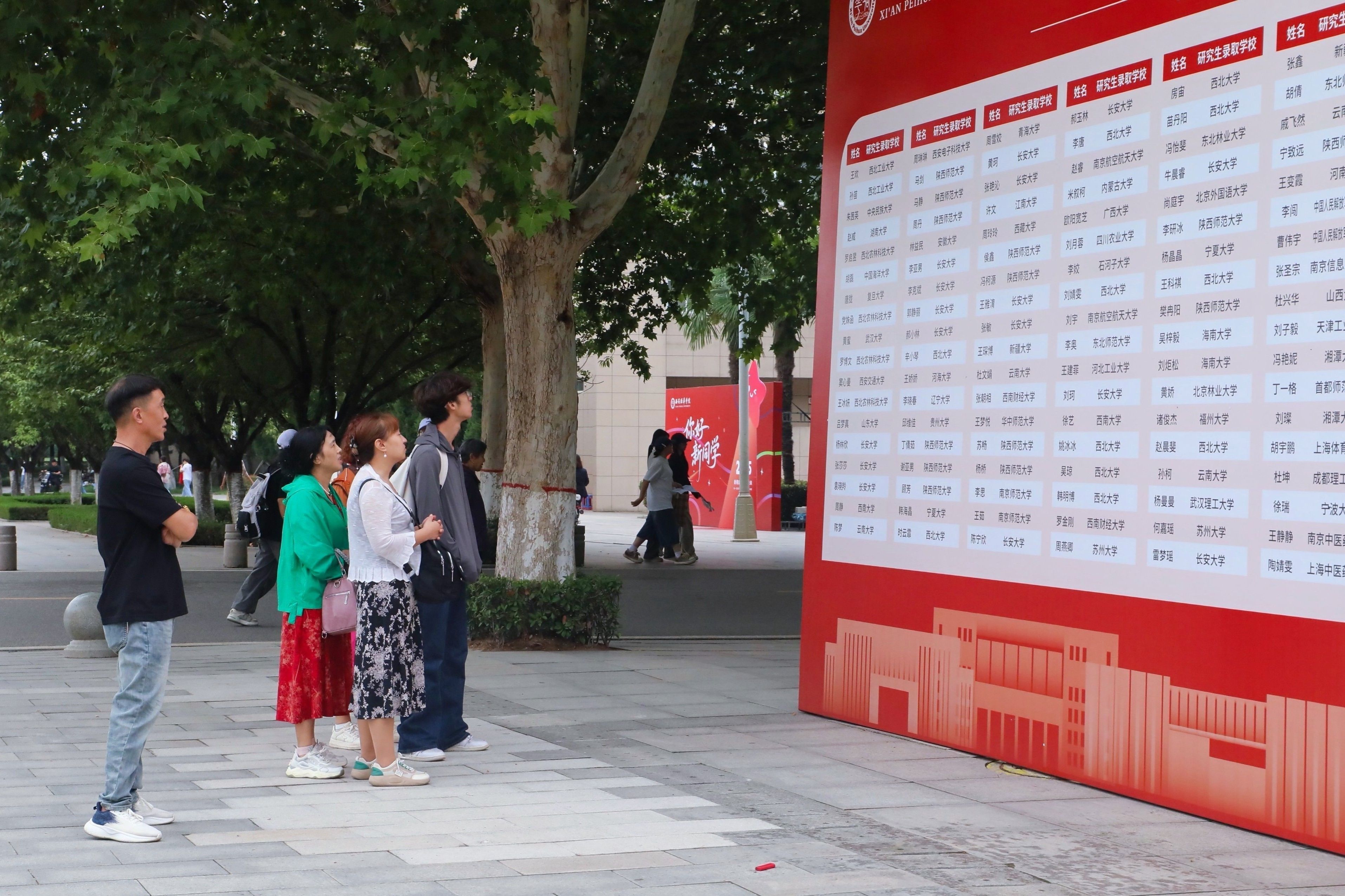 展板前吸引着众多新生和家长驻足。陕西公务员聘用人员人数连续三年蝉联同类院校第一;2024年国家统一法律职业资格考试,法学专业法考通过率34.8%;2025年全国护士资格证考试,护理学专业通过率100%……这些荣誉全方位展示着学校近年来的育人成果和办学实力。