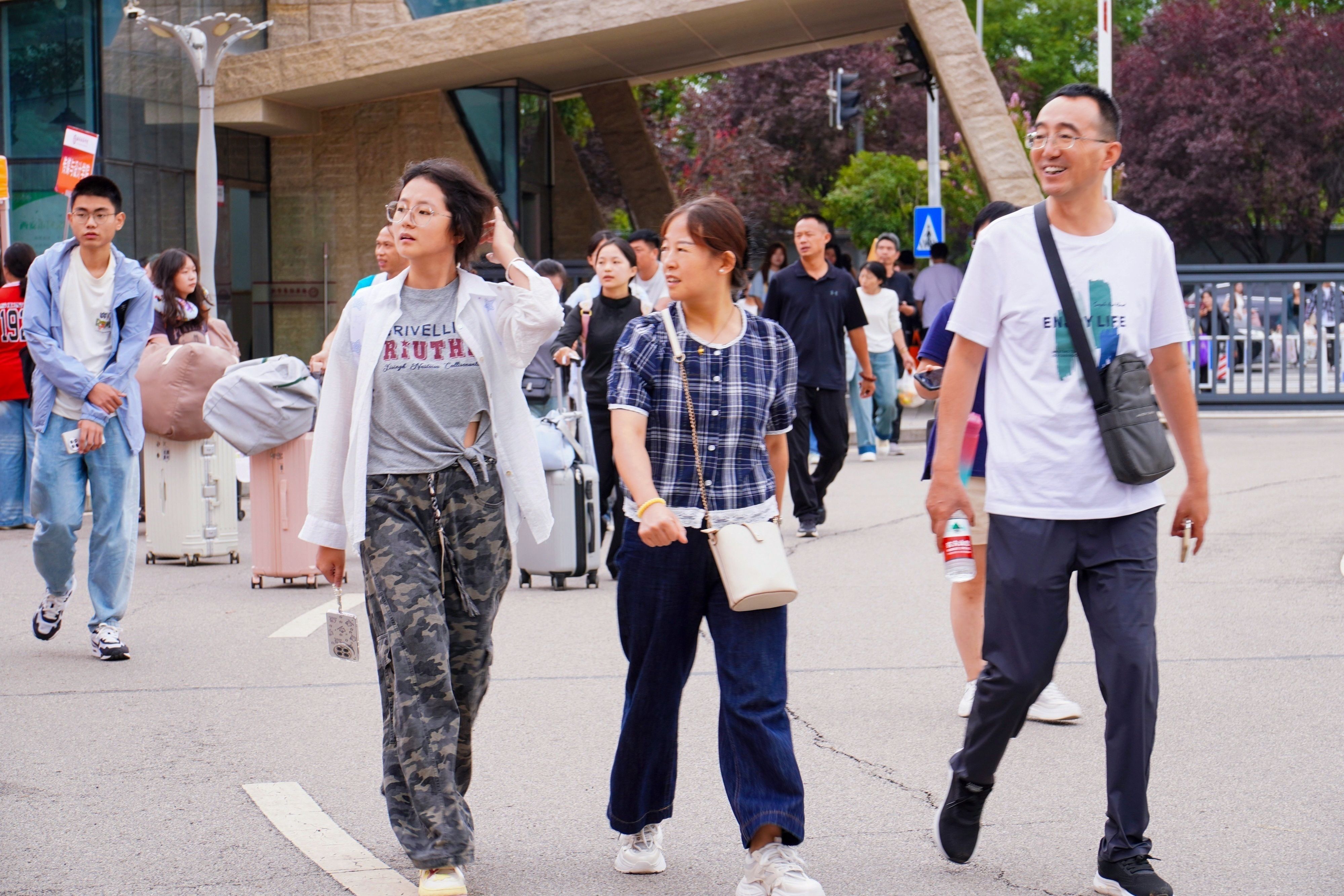 校园里随处可见家长陪伴新生的身影,他们细心帮着孩子提行李。沉甸甸的行囊里,装着的不仅是生活用品,更是家人浓浓的关爱与不舍。