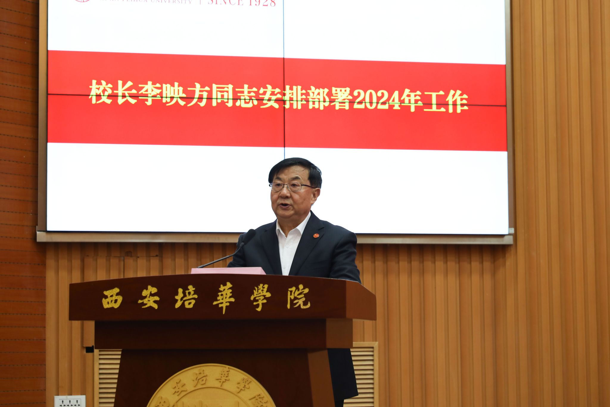 会上,校长李映方安排部署了2024年工作。他从党的建设、审核评估整改、教育教学改革、产教融合、师资队伍建设、科学研究水平、学生工作质量、治理体系建设和管理服务效能等九个方面,40项重点工作,对2024年总体工作进行了部署安排。他指出,2024年是学校发展历程上至关重要的一年,是实现学校高质量发展的推进之年。全体干部教师要以时不我待的精神奋力打开事业发展新天地,加快推进高水平民办大学的建设步伐,以优异的成绩向百年培华交出满意的答卷。