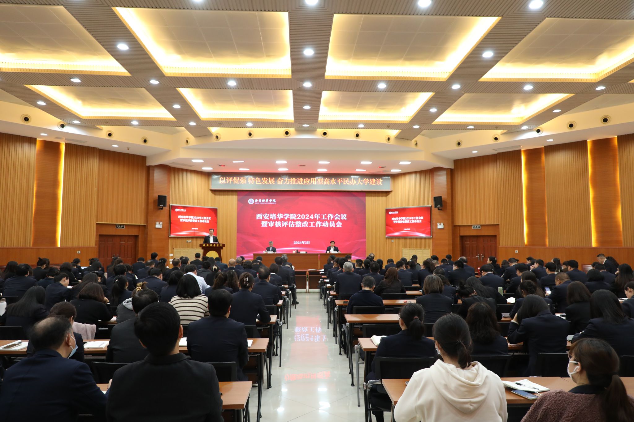 3月27日下午,学校在明德楼报告厅召开2024年工作会议暨审核评估整改工作动员会。全体校领导、教师代表、行政部门主管岗位以上人员等200余人参加本次会议。会议由党委书记刘锋主持。