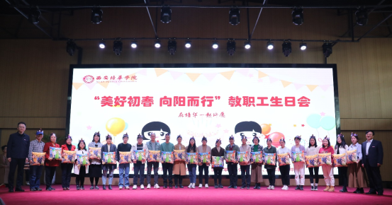 “祝你生日快乐,祝你生日快乐……”3月7日中午欢乐温暖的《生日歌》回荡在西安培华学院沁园餐厅三楼。点上生日蜡烛,唱着欢快的生日歌,在温暖的烛光和欢快的氛围中,“寿星”老师们合上双手虔诚许下对未来美好的期许,齐心协力吹灭蜡烛,校领导和大家围坐在一起,为老师们分发蛋糕,共享甜蜜,集体生日会充满欢声笑语和浓浓温情。