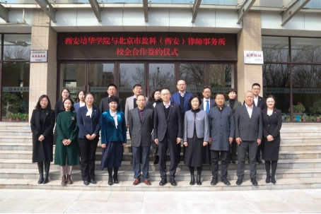 为进一步加快产教融合发展,推进校企深度合作,提升专业内涵,深化应用型改革,3月1日,西安培华学院与北京市盈科(西安)律师事务所校企合作签约暨客座教授聘任仪式在西安培华学院明德楼第一会议室举行。莅临此次仪式的嘉宾有:北京市盈科律师事务所中国区副主任、清华大学法学院陕西校友会会长白正谊,西安市律师协会副会长、北京市盈科(西安)律师事务所管委会主任王丽萍,北京市盈科(西安)律师事务所工会主席、刑事法律事务部主任、股权高级合伙人田宏伟,监事会主任、股权高级合伙人张海斌,实习律师工作委员会主任、股权高级合伙人薛鹏,未成年人保护与关心下一代权益保障工作委员会主任、股权高级合伙人徐新逸,业务指导委员会副主任、股权高级合伙人段万金,高级合伙人史楠楠、方韶莉,合伙人秦文、林安(西安培华学院法学专业2017届校友)。