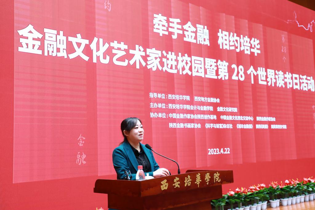 4月22日,“牵手金融,相约培华”文化艺术家进校园暨第28个世界读书日活动在西安培华学院举行。本次活动由西安培华学院会计与金融学院、金融文化研究院主办,西安地方金融协会会长王西省,陕西省诗词学会常务副会长商子秦,西安交通大学高培中心主任黎荔等出席会议并致辞。
