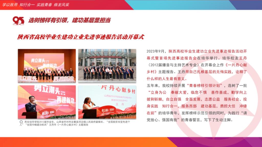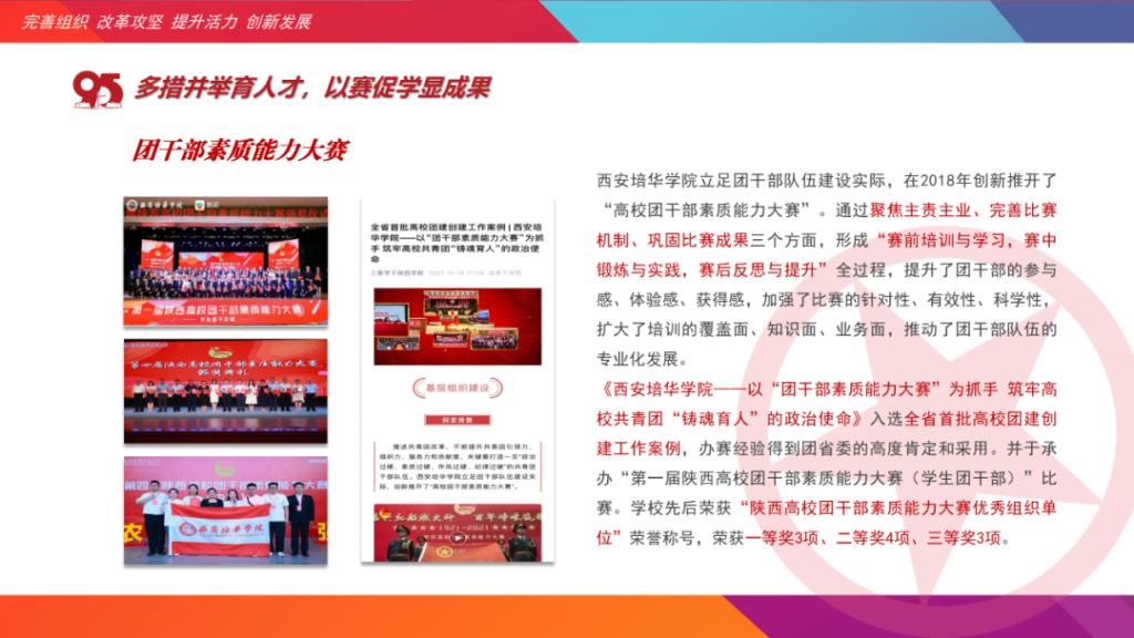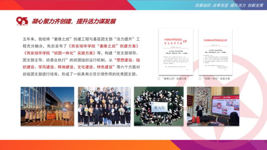 大潮泱泱,浩浩汤汤。同心汇聚,青年力量。五年改革,砥砺思想。发展创新,自信自强。校园文化,百花齐放。培华学子,风采万丈。社会实践,提升自我。立身为公,青年榜样。第二课堂,丰富多彩。志愿服务,永在路上。百团大战,百花齐放。一院一品,发挥特长。凝聚青年,服务大局。从严治团,当好桥梁。青年喜爱,团员满意。目标坚定,使命担当。