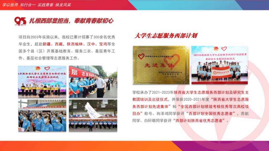 志愿服务是主体性育人的重要途径、隐性化育人的重要方式、实践化育人的重要载体。通过志愿服务活动,使培华青年在了解国情中坚定理想信念、在社会参与中厚植爱国主义情怀、在实践中增长知识见识等,努力成长为有理想、有本领、有担当的时代新人。志愿服务作为新时代青年参与最广泛、最自觉、最主动、最喜爱的实践活动,可发挥其育人优势,为培养有理想、有本领、有担当的时代新人贡献力量。