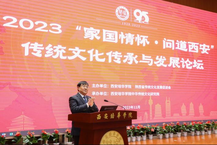 为学习贯彻习近平新时代中国特色社会主义思想,弘扬家国情怀,传承中华传统文化,振兴文化产业,为西安经济高质量发展建言献策、蓄势赋能,11月6日,由西安培华学院、陕西省传统文化发展促进会联合举办的2023“家国情怀·问道西安”传统文化发展论坛在西安培华学院图书馆报告厅隆重开幕。开幕式由西安培华学院校长李映方主持。