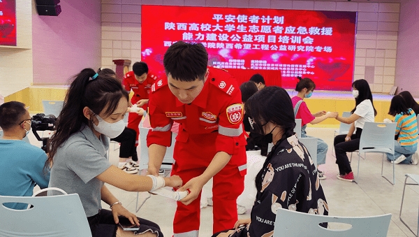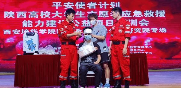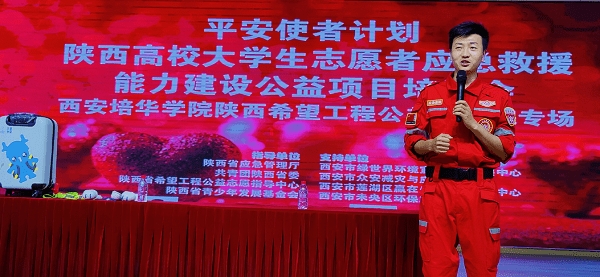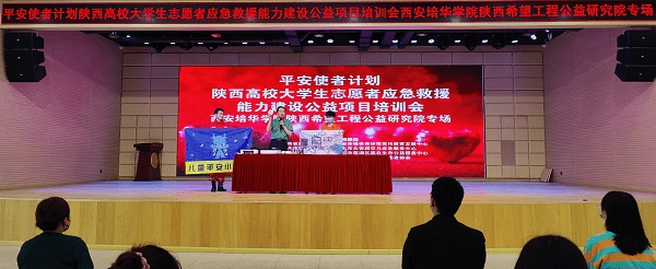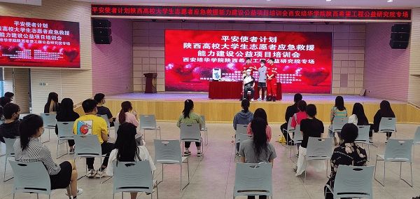 4月26日,“平安使者计划 · 陕西高校大学生志愿者应急救援能力建设公益项目培训会”培华专场在恒友楼举行。