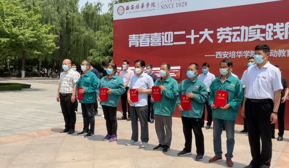 为深入贯彻《中共中央国务院关于全面加强新时代大中小学劳动教育的意见》和陕西省教育厅关于全面落实《大中小学劳动教育指导纲要(试行)》的通知要求,充分发挥劳动育人在立德树人中的重要作用,在全校范围内形成“崇尚劳动、尊重劳动、 热爱劳动、学会劳动,劳动最光荣”的文化氛围,大力弘扬劳模精神、抗疫精神、劳动精神、工匠精神,实现“五育”并举、知行合一,培养德智体美劳全面发展的社会主义合格建设者和可靠接班人。近日,我校青春喜迎二十大、劳动实践展风采--“劳动教育月”启动仪式在综合楼西广场隆重举行。