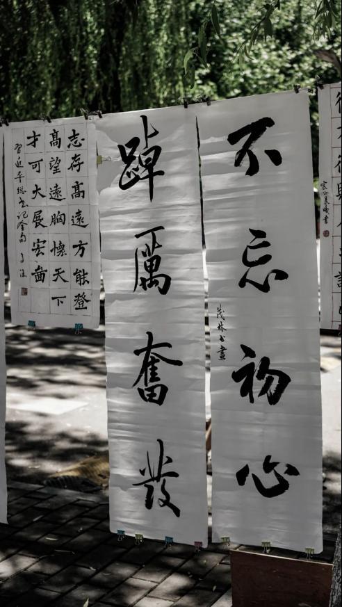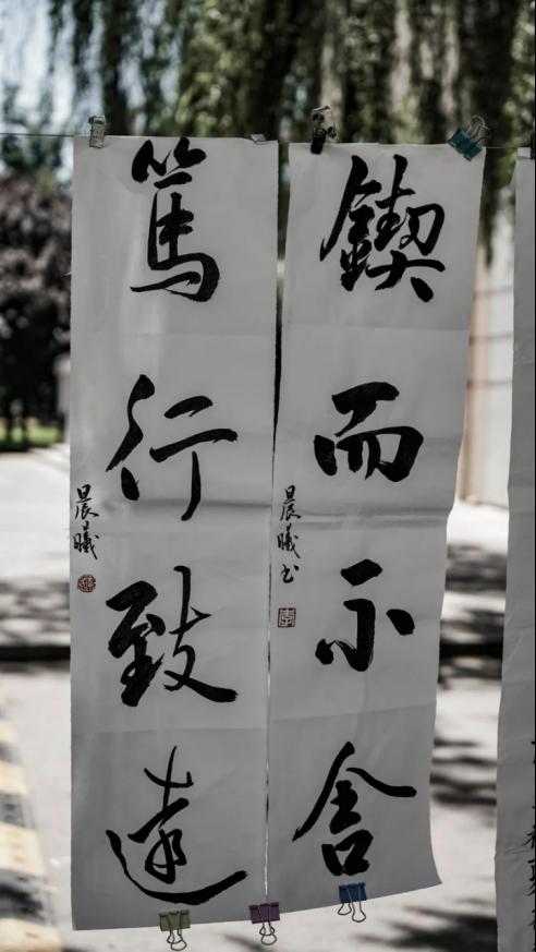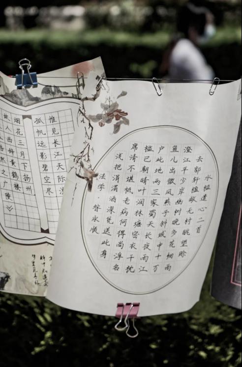 此次活动采取个人参赛形式,作品分为软笔,硬笔,国画三种类型。经过学生投稿、社团遴选、专家评审,最终评选出获奖作品18幅,并在线下进行展览: