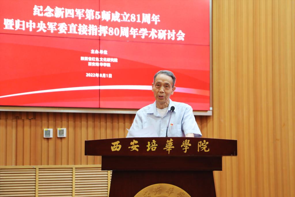 8月1日上午,在中国人民解放军建军95周年之际,由陕西省红色文化研究院、西安培华学院联合举办的“纪念新四军第五师成立81周年暨归中央军委直接指挥80周年学术研讨会”在培华举行。新四军第5师老战士、老同志亲属代表,中国新四军研究会有关负责人、特邀党史专家,高等学校专家教授等通过线上线下等形式参加了会议。