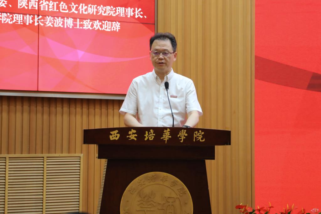 在开幕式及纪念会上,陕西省政协常委、陕西省红色文化研究院理事长、西安培华学院理事长姜波博士致欢迎词。他指出,举办“纪念新四军第5师成立81周年暨归中央军委直接指挥80周年学术研讨会”是深入学习贯彻中央党史学习教育和习近平总书记关于加强新四军历史研究重要指示精神,弘扬新四军铁军精神,传承红色基因,落实立德树人根本任务的切实需要,充分发挥铁军精神在激发爱国热情、凝聚人民力量、培养民族精神方面的重要作用。