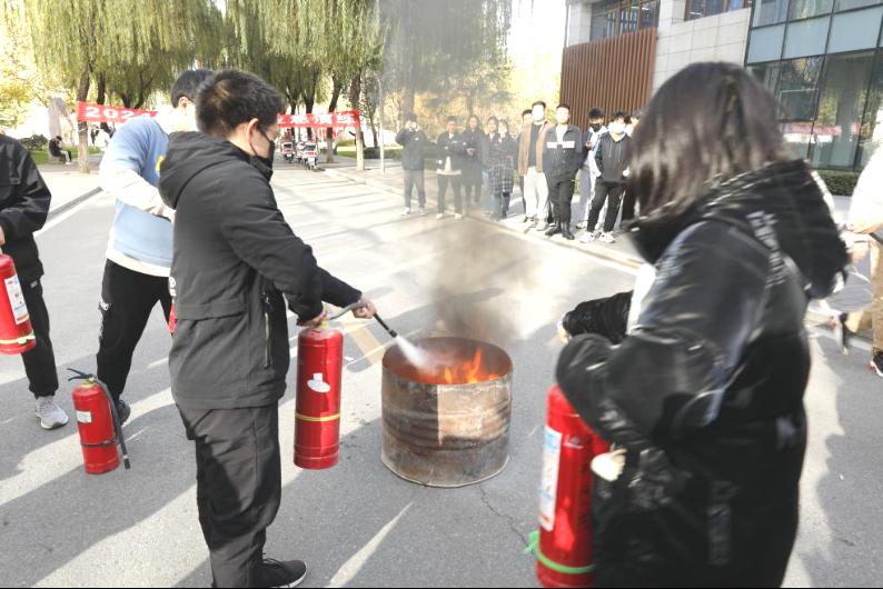 随后,消防站管理干部向大家展示了灭火器的使用方法,科普了常见火灾类型的应对办法,指导师生代表做了现场模拟扑救。