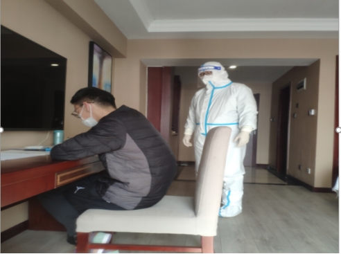 在上午场考试进行至2/3时,隔离酒店疫情管控人员告知两位监考老师,该名考生已经被确诊为阳性病例。经学校研招考试工作领导小组研究,批准立即启动应急预案,在征求考生继续参考意愿后,寇军强、陈浩老师及时准备下午的组考工作。由于考生所在房间、随身物品和与其接触过的试卷都有可能携带病毒,不能随意处置。所以,在下午考试完毕后,两位监考老师对试卷进行了多次全面消杀和包装。此时,寇军强、陈浩两位老师已经连续工作长达13个多小时。因为身处污染隔离区不能脱下防护服,这期间他们滴水未进,也无法如厕,身体已出现强烈的不适感。作为合格的共产党员,有着坚定顽强的意志品格,一直无怨无悔地坚守在工作岗位。积极响应上级“应考尽考”的精神要求,不退缩、不放弃,这种无私奉献的责任感和精神值得我们学习和弘扬。