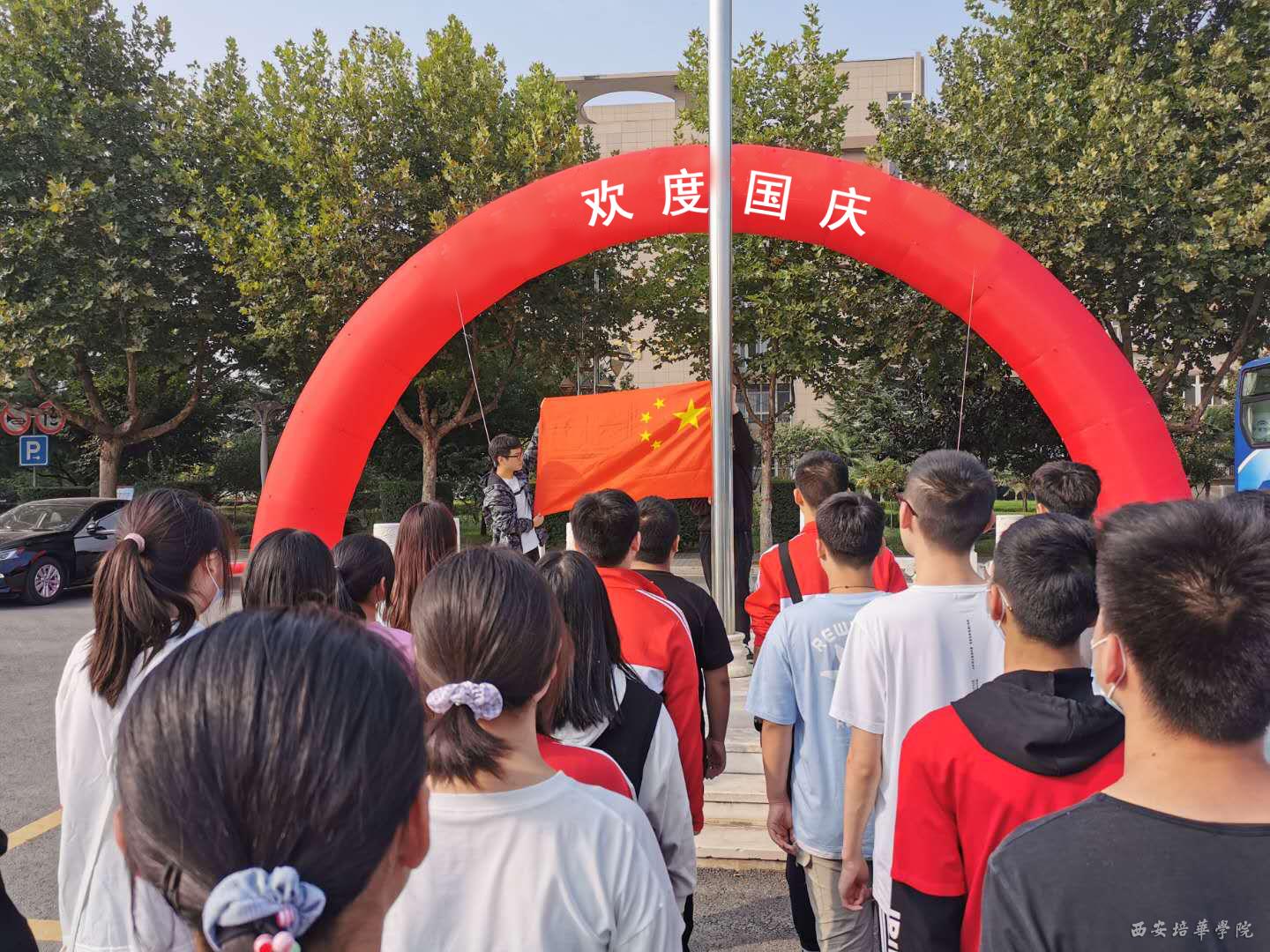 在庄严肃穆的仪式中,以缓缓升起的五星红旗,纪念这个特殊的节日,在五星红旗温暖的颜色中,寄托培华学子对家国的情感。