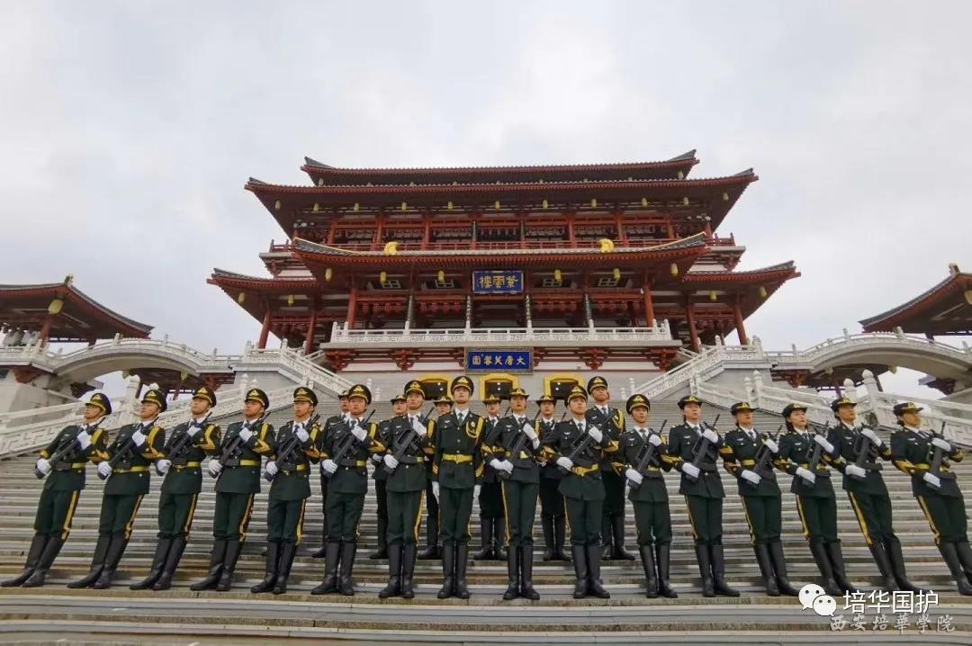 西安培华学院国旗护卫队举办大唐柔情芙蓉园、家国同庆红旗扬活动