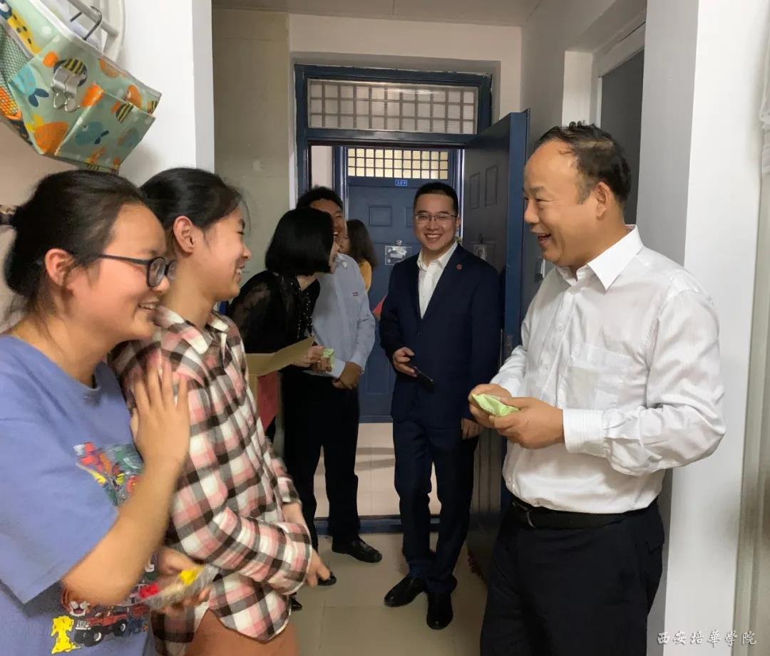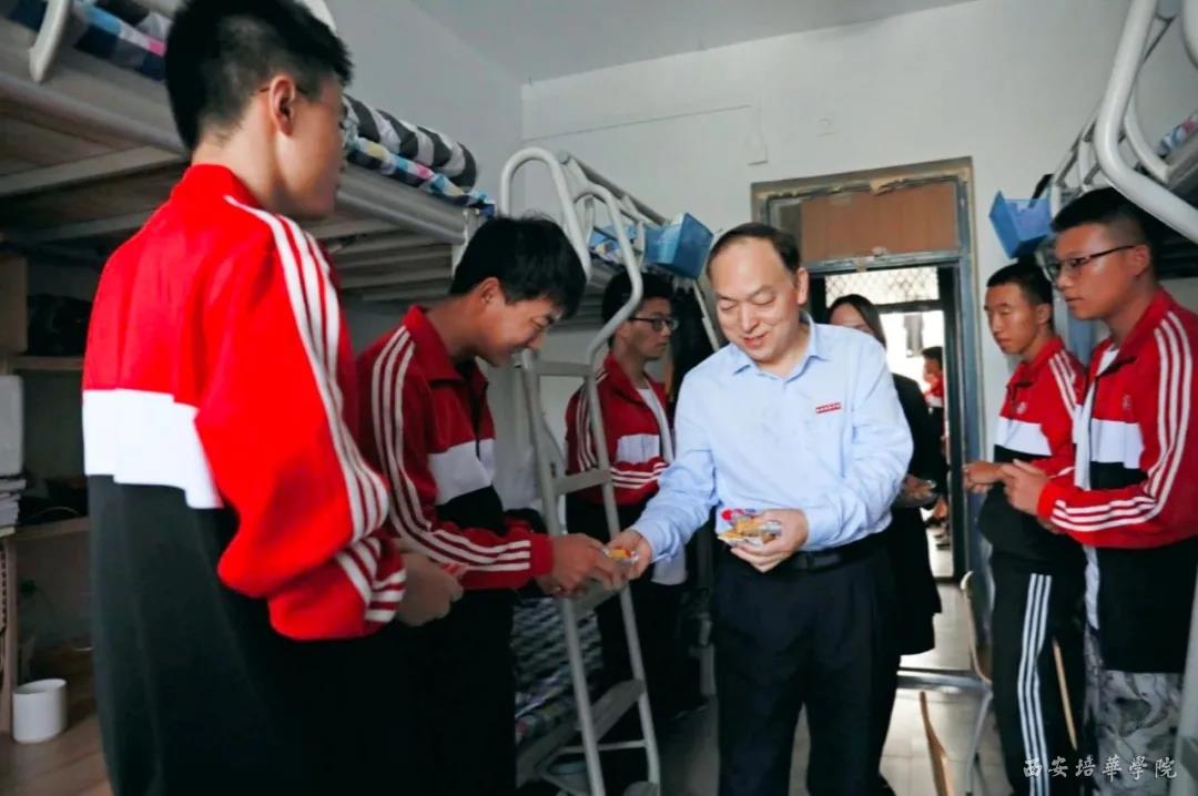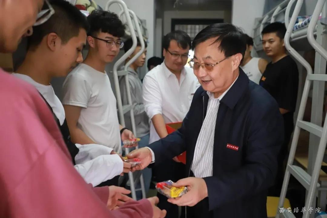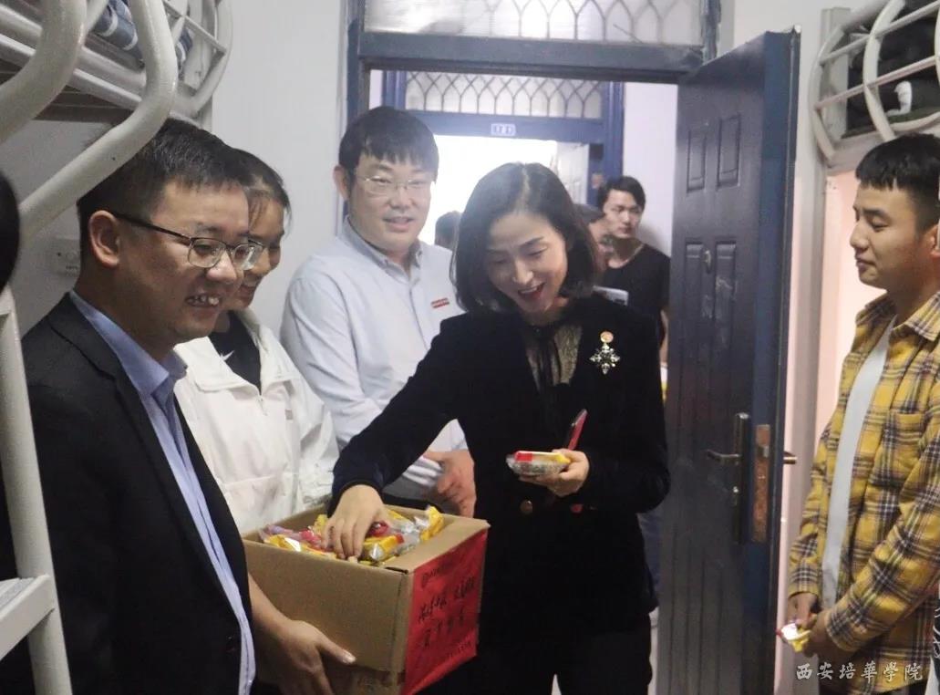 理事长姜波、校长李映方、党委书记罗新远、副校长胡俊生、姚文静、于国亮等校领导来到公寓楼,亲手为学生宿舍的同学送上月饼。他们仔细询问学生的学习生活情况,并祝福培华学子们节日快乐!