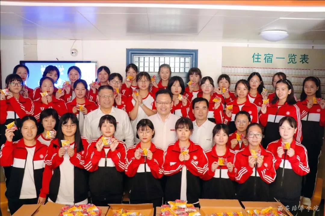 一块小小的月饼不仅蕴含了中秋的祈愿。还表达了理事长对于各位学子们学业的期望和祝福,学子们收到的定制月饼,带来的不仅是唇齿留香,更多的是一份心间留的归属感。远离家乡来到培华,虽然不能和父母亲人一起过节,但无论身在何处,培华都与每一位学子同在。