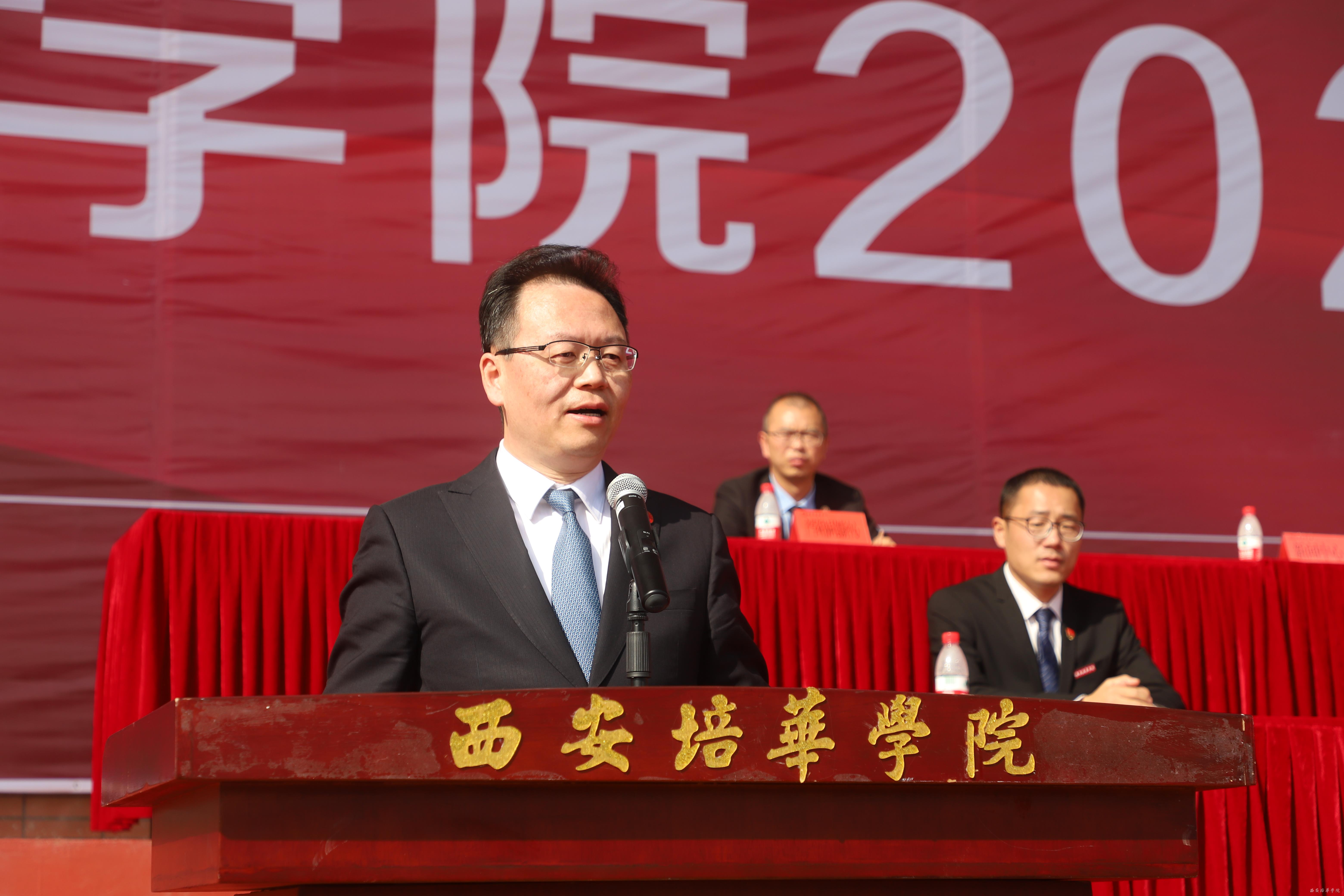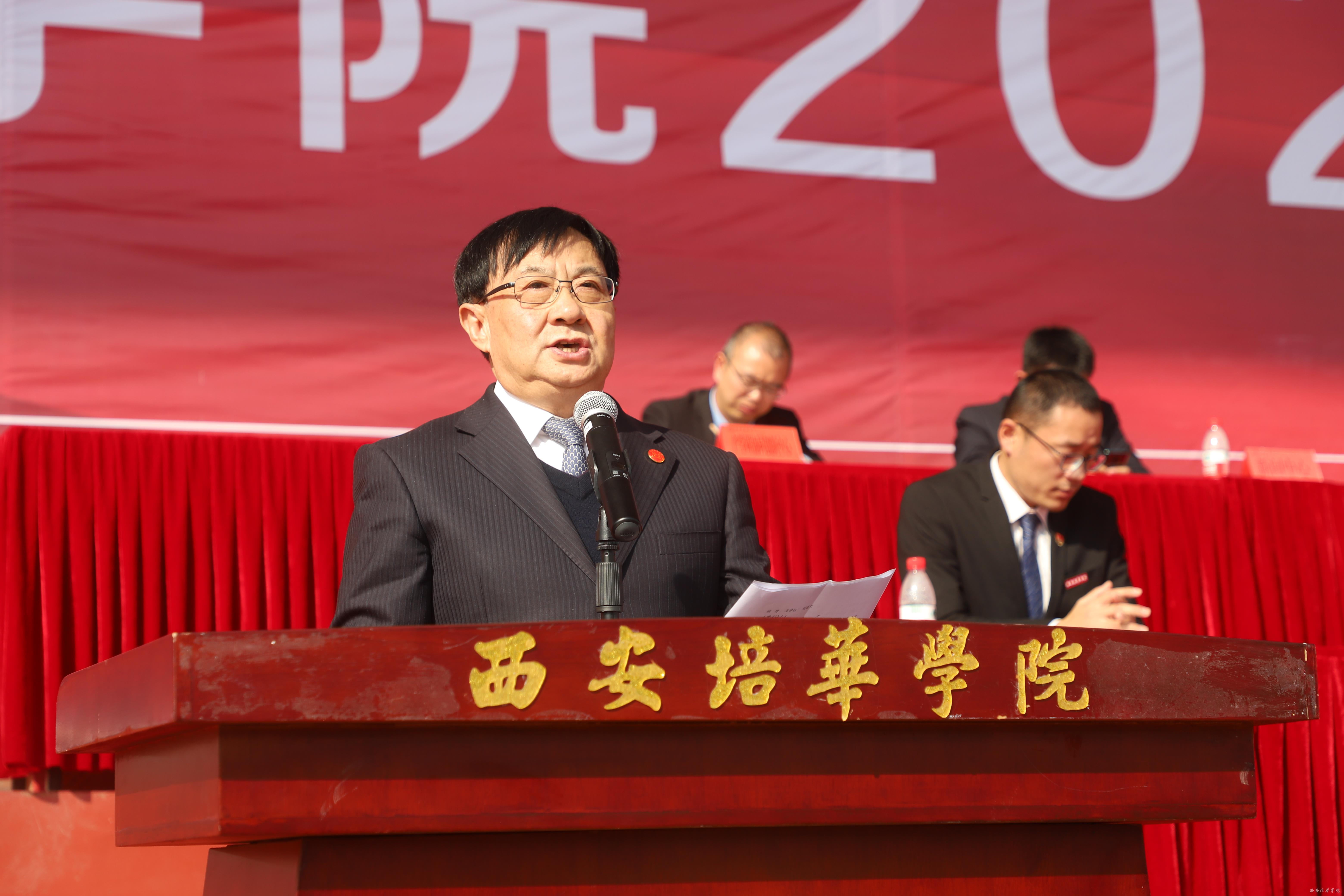 最后,姜波理事长在讲话中回忆了培华筚路蓝缕的建校历程。他指出,培华作为西部首家民办本科高校,在90多年的历史积淀中为祖国建设培养了一大批优秀人才,也希望2020级新生在培华这个大家庭中,珍惜大学时光,努力学习知识,锻炼自己各方面能力。向内探索自身的潜能,向外积极结交朋友,做全能发展的人才。不畏风雨,勇挑重担,绘出绚丽的人生篇章。