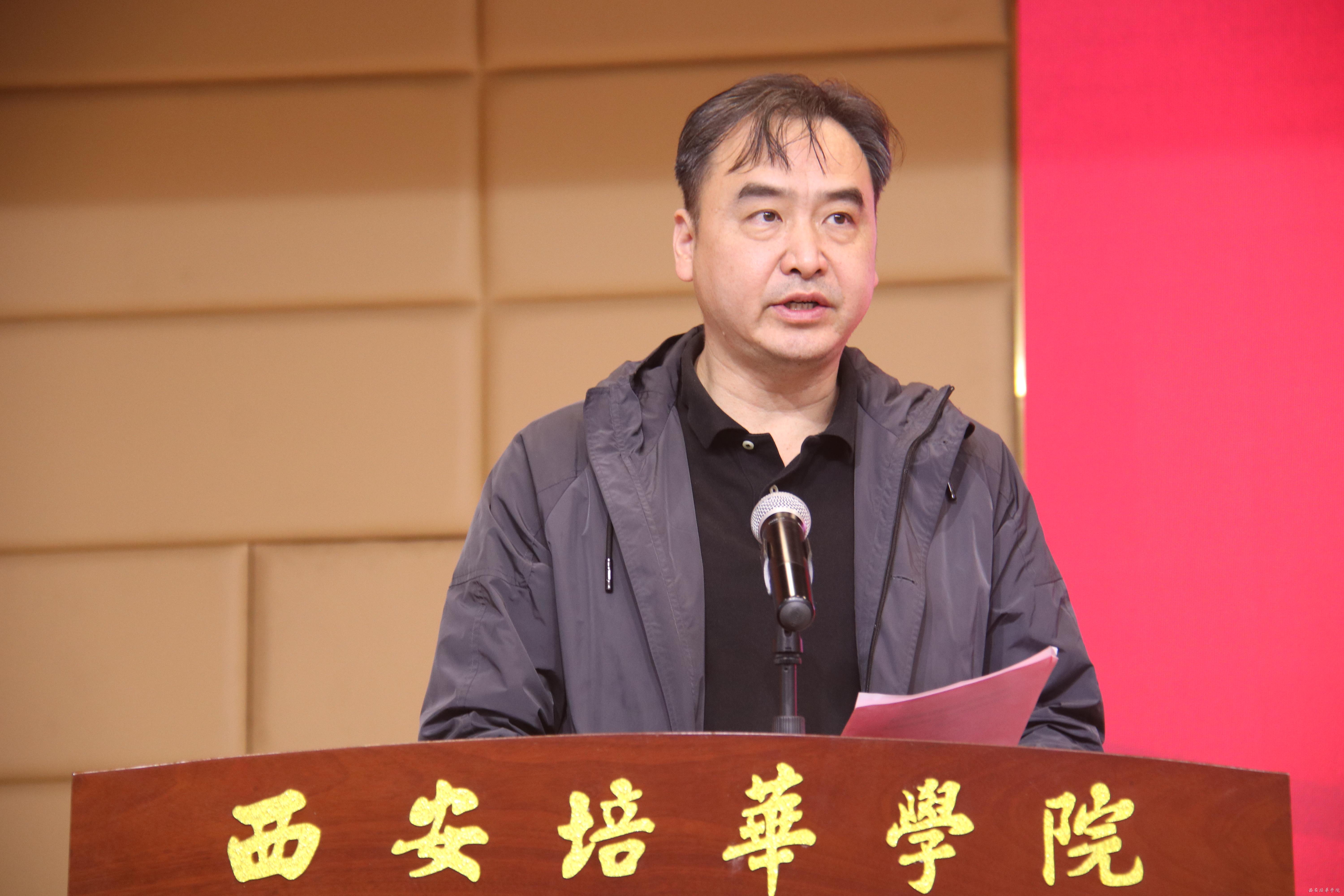 陕西省青少年发展基金会理事长、省希望工程公益志愿指导中心主任乌钢宣读《关于同意成立西安培华学院陕西希望工程公益研究院的批复》