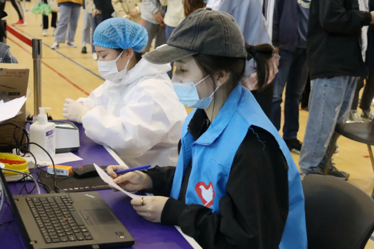 工程造价专业学生冯依华:每天早晨7点40到这里就看到身着白衣的医生已经各就各位了,他们想必更加辛苦,和连续在这里做接种工作的校医院医生相比,我能做的很有限,但是相信只要做好我分内的事,也能够帮助到大家。