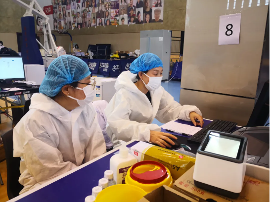 校医院 王老师:今天已经是接种工作第二天了,在留观区与同事、志愿者一起,负责接种人员接种后的30分钟留观。虽然工作要求是3天,但是依然要求战斗到最后一刻,守护校内人员全部接种完疫苗。今天较昨天流程更加优化,速度有了很大提升。校医院更多的领导为高质高效完成疫苗接种工作,甚至全天无休息,为校园安全做出了巨大贡献,他们的精神让人敬佩。