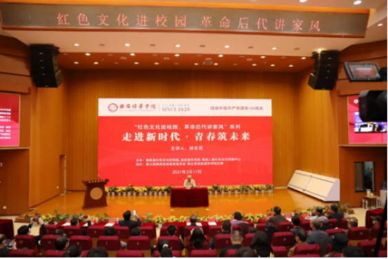 3月17日,由陕西省红色文化研究院、西安培华学院、陕西三秦红色文化传播中心主办,致公党陕西省委教育委员会,致公党西安培华学院支部协办的迎接建党100周年,“红色文化进校园,革命后代讲家风”系列活动在西安培华学院长安校区举行,本次活动邀请胡乔木同志之子、西安培华学院名誉校长胡石英为青年学子以《走进新时代,青春筑未来》主题讲述创新与梦想。