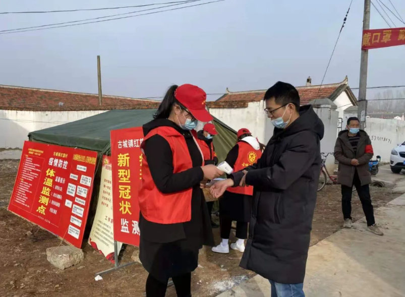 2019级英语专业 王紫薇:陕西省渭南市合阳县新池镇秦庄村的王紫薇在志愿活动中负责轮流值班,测量来往人的体温。
