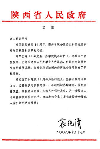人谓十月为金秋,培华十月涌春潮。2008年10月19日,西安培华学院迎来了期待已久的建校八十周年华诞。