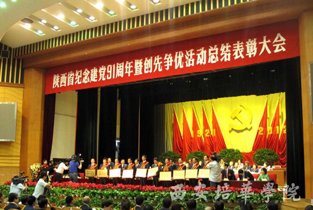 6月29日,陕西省庆祝建党91周年暨创先争优活动总结表彰大会在西安举行。陕西省委书记赵乐际,省委副书记、省长赵正永等领导出席会议,并为受表彰的先进集体和优秀党员代表颁奖。我校党委被授予“全省创先争优先进基层党组织”称号,这是我省民办高校中唯一获此殊荣的高校。