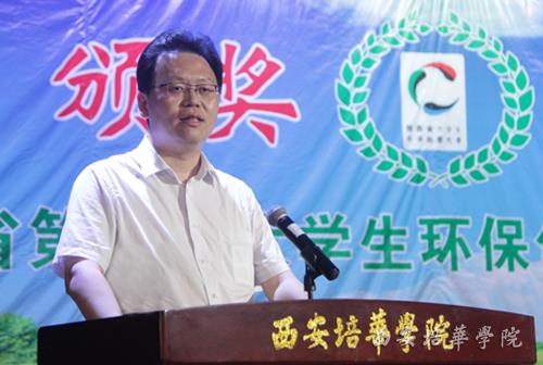 陕西省教育厅体卫艺处处长李鸣宣读表彰决定。陕西省十届人大常委会副主任、省决策咨询委员会副主任邓理发表讲话,他首先对获奖的师生表示祝贺,并希望环保大赛能够持之以恒的发展、提升创意水平、勤于思考、拓展规模,形成人人爱护环境的局面,凝聚各界力量共同致力于环保事业的发展当中,为建设“富裕陕西、和谐陕西、美丽陕西”做出自己应有的贡献。