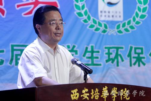 省政协常委、致公党陕西省委会副主委、省侨联副主席、我校姜波理事长致欢迎词。他指出,当今环境问题已经成为全民关注的热点问题,它关系着人类的生活发展问题,保护环境是全人类共同责任。环保大赛的举办有力地促进了大学生开展环保创意实践,对我省经济社会的可持续发展、生态文明建设和大学生创业、就业产生了积极的教育作用和引领作用。同时他呼吁更多的大学生作为环境保护的参与者和推动者为建设美丽陕西贡献自己的力量。