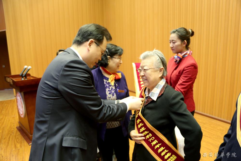 活动中, 原全国政协副主席汪锋孙女、陕西三秦红色文化传播中心副主任王珑介绍了2015年组织纪念抗战胜利70周年活动情况;西安铁路局文研会常务副会长、《清秋》杂志总编郑子云介绍《清秋》杂志第30-31 期纪念专刊社会评价情况;陕西皇城书画研究院院长陈聆、书画家周明智、吕瑞萍依次向陕西省红色文化研究院、陕西三秦红色文化传播中心赠送书画作品; 我校姜波理事长向参加本次大会的革命先烈后人颁发活动纪念勋章。