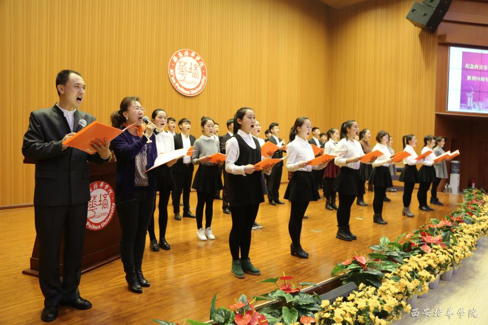 12月12日,纪念西安事变79周年暨抗日战争胜利70周年征文活动颁奖大会在我校维之图书馆报告厅举行,出席此次活动的领导及嘉宾有:中国延安精神研究会理事,北京延安儿女联谊会会长胡木英; 原全国政协副主席何长工之子、亚太旅游联合会主席何光晔夫妇;原共青团中央书记处第一书记、中共中央办公厅第一副主任冯文彬之女冯延曦;原甘肃省人大常委会副主任、政协副主席蒙定军之女、科技部办公厅原主任蒙建东,蒙建亚;陕西省政协委员、著名歌唱家贠恩凤;陕西省政协常委、致公党陕西省委会副主委、陕西省红色文化研究院理事长、我校理事长姜波;陕西省红色文化研究院秘书长、陕西三秦红色文化传播中心主任王放等。