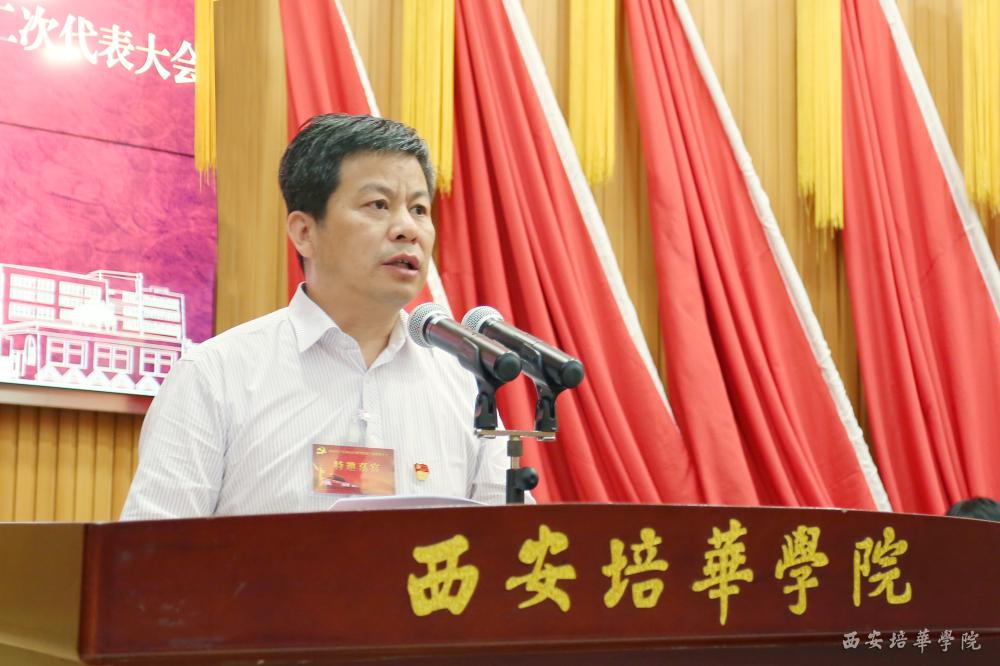 胡俊生同志代表中共西安培华学院第一届委员会向大会作了题为《 凝心聚力促发展,努力提高党建科学化水平》的工作报告。