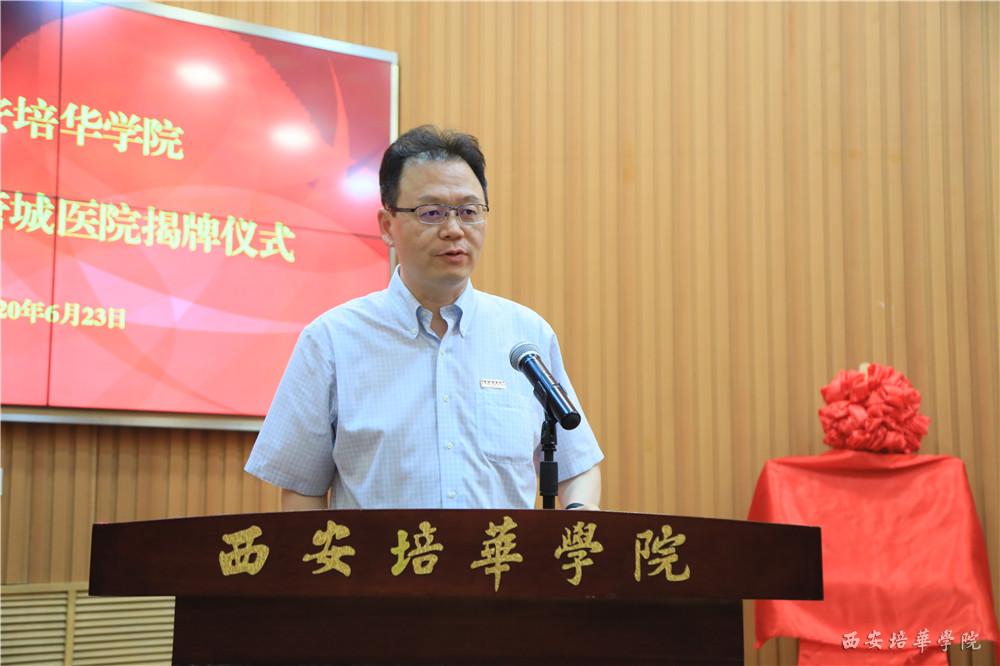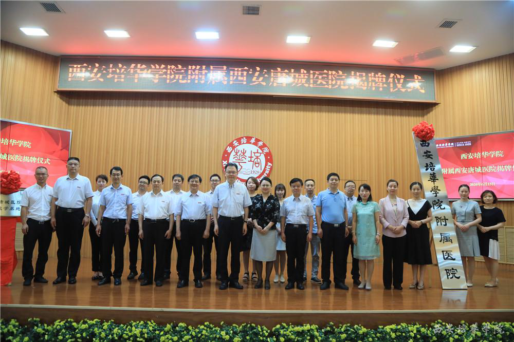 6月23日下午,西安培华学院附属西安唐城医院揭牌仪式在西安培华学院长安校区举行。陕西省政协常委、省工商联副主席、西安唐城医院董事长尉竞飞,医院党委书记兼执行院长郑瑞世,陕西省政协常委、致公党陕西省委会副主委、西安培华学院理事长姜波,校长李映方等校院领导出席了揭牌仪式。仪式由常务副校长胡俊生主持。