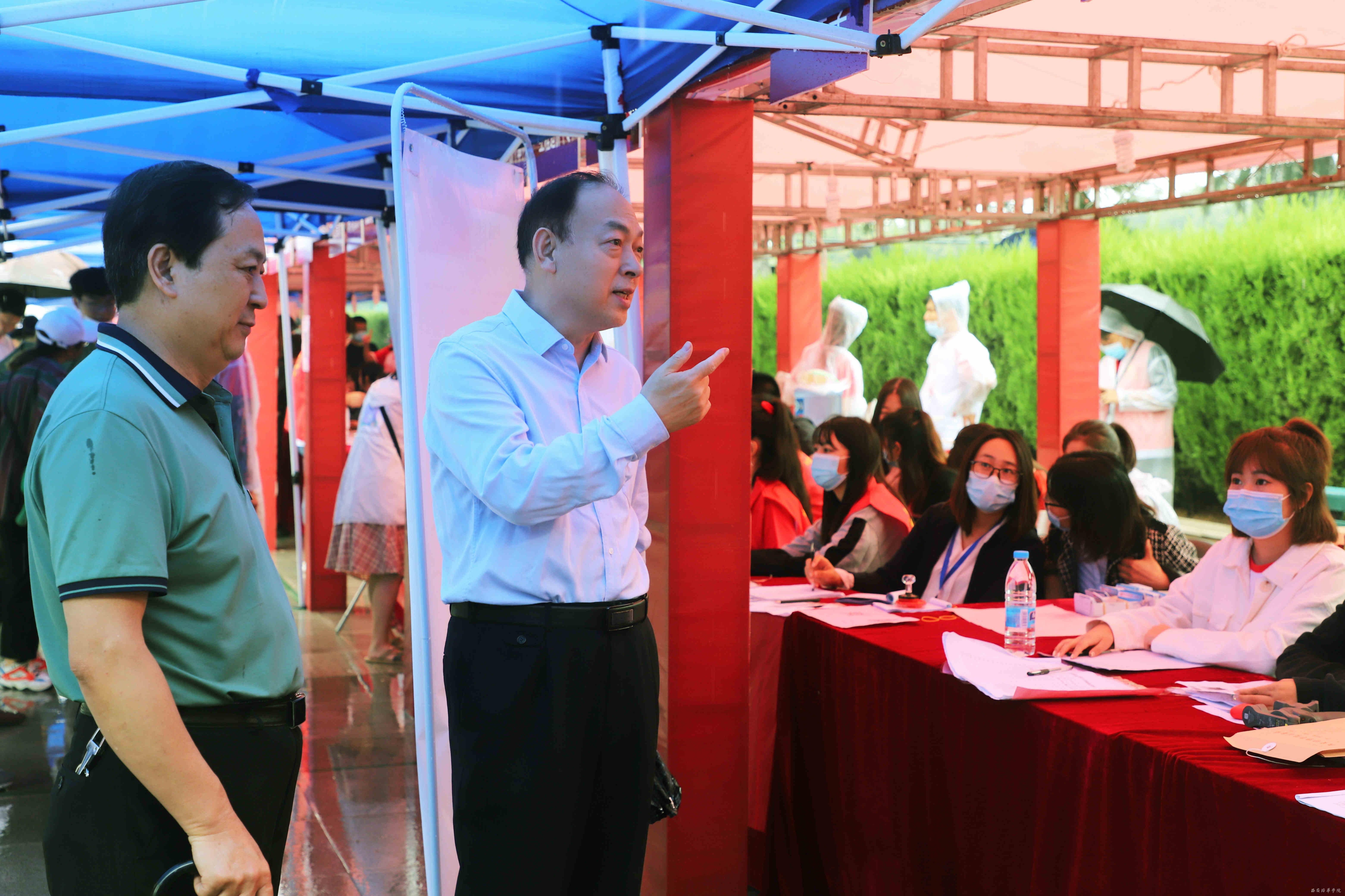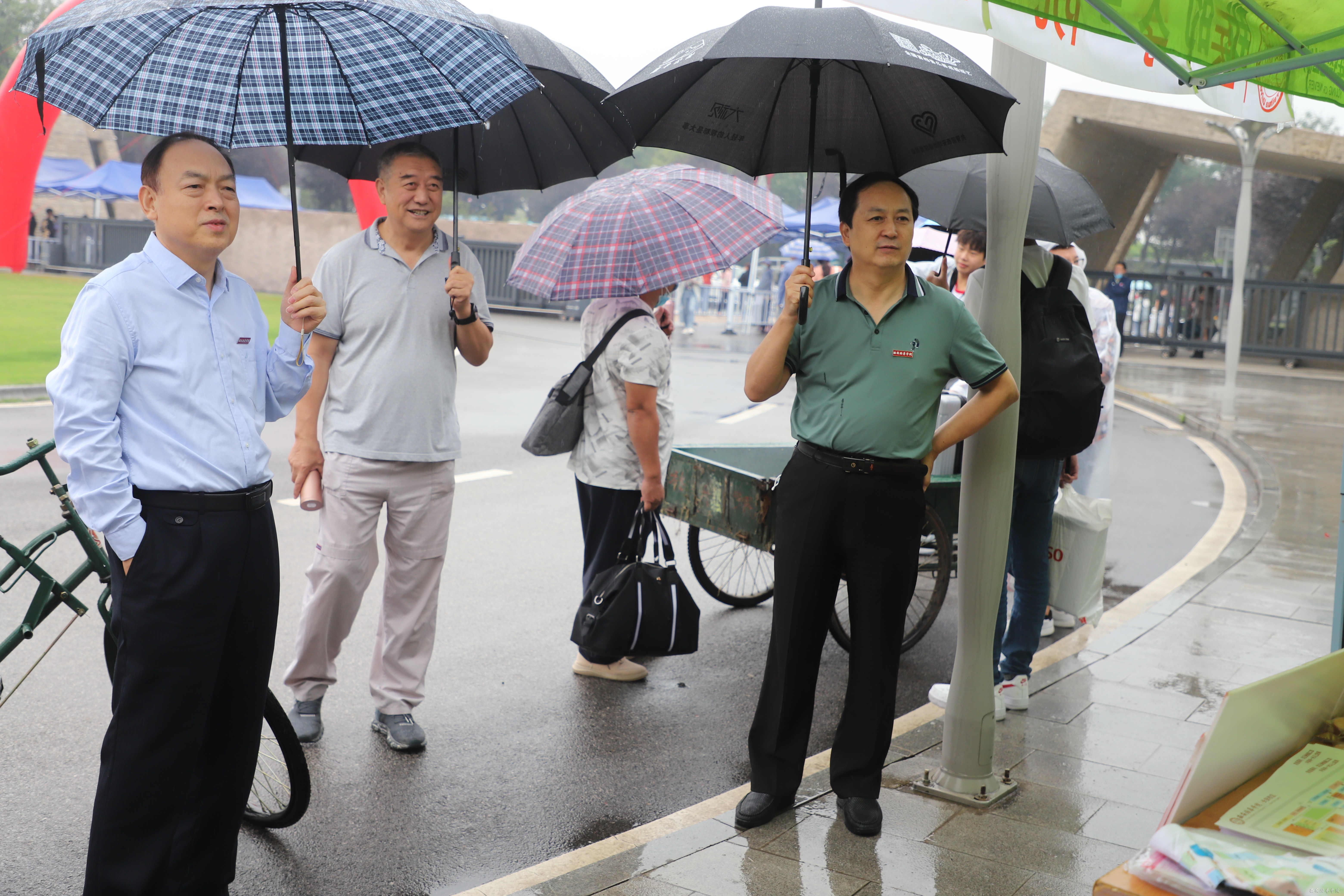 为深入了解学校迎新工作开展情况,更好提升学校迎新服务质量水平,9月20日,西安培华学院理事长姜波、常务副校长胡俊生、副校长姚文静、副校长于国亮、党委副书记、工会主席徐国富等校领导,冒雨对学校迎新活动展开视察指导。校导领依次走访了学校东门各二级学院迎新点、沁园餐厅、体育馆、五棵松红运动广场等地,亲切慰问了现场工作人员和志愿者,并与新生及新生家长展开交流。