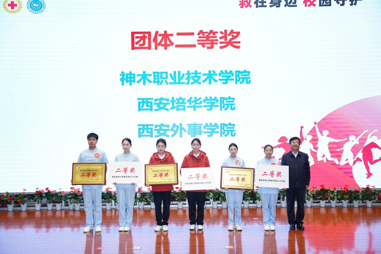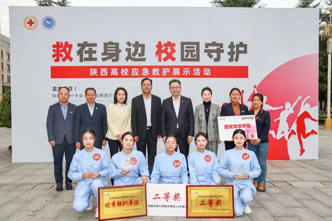 本次展示活动创新采用“专题培训+技能展示+主题演讲”三维模式,设置实操竞技、情景模拟等多维度考核环节,全方位考核参赛队伍的理论功底和协同能力。经过激烈角逐,分别评选出心肺复苏+AED单项奖一、二、三等奖;创伤救护单项奖一、二、三等奖;主题演讲单项奖一、二、三等奖;团体一、二、三等奖及优秀组织奖。其中,西安培华学院代表队获团体二等奖及优秀组织单位称号。医学院杨添乐同学摘得创伤救护组一等奖,张璐同学在成人心肺复苏(CPR+AED)项目获三等奖,杜元元同学获主题演讲三等奖。