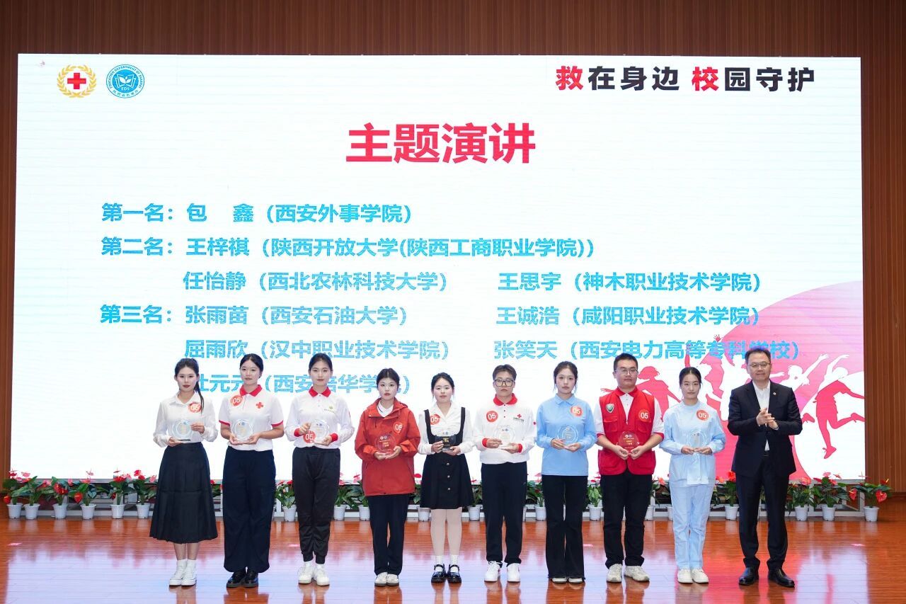 陕西省教育厅体卫艺处一级调研员樊治锋在讲话中表示,本次“救在身边 校园守护”活动,是高校应急救护培训的成果检验,更是青年践行社会责任的生动实践。希望学子们以技赋能、以爱尽责,筑牢校园安全屏障,将生命守护精神融入青春担当,传递向善向暖的力量。