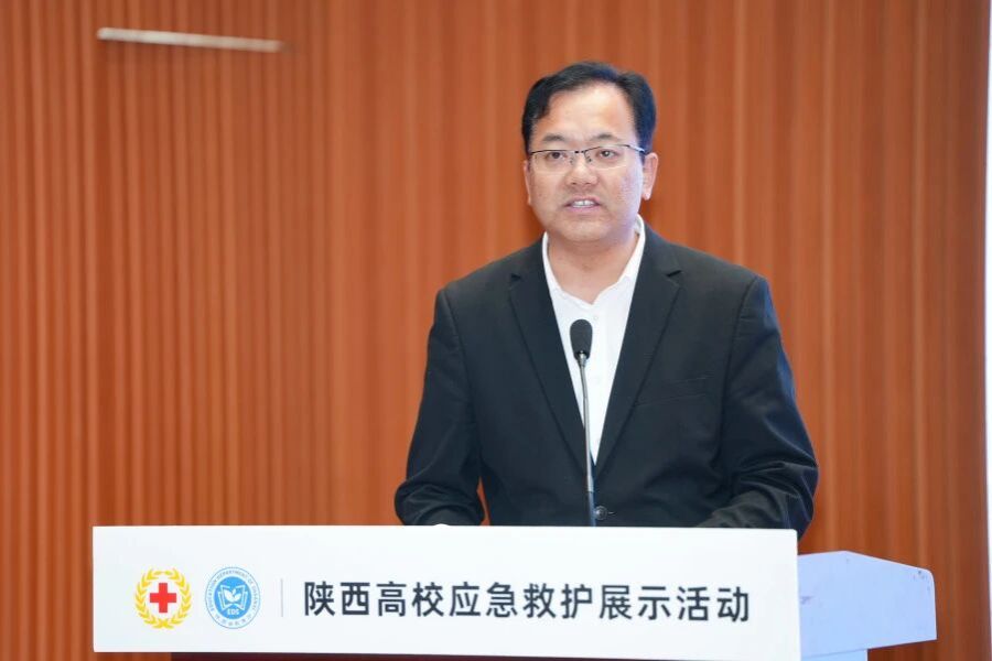 陕西省红十字会党组成员、专职副会长李志刚在致辞中强调,高校作为人才培养主阵地,肩负着应急救护知识普及与技能传承的重要使命。他援引《中华人民共和国红十字会法》指出,红十字应急救护与青少年工作是法定职责,亟需通过“五大行动”构建高校应急能力建设体系:“组织强基”行动推进基层组织标准化建设,“组网协作”行动培育青年传承力量,“生命教育”行动融入思政教育主渠道,“志愿服务”行动促进专业与实践融合,“安全守护”行动筑牢校园安全防线。