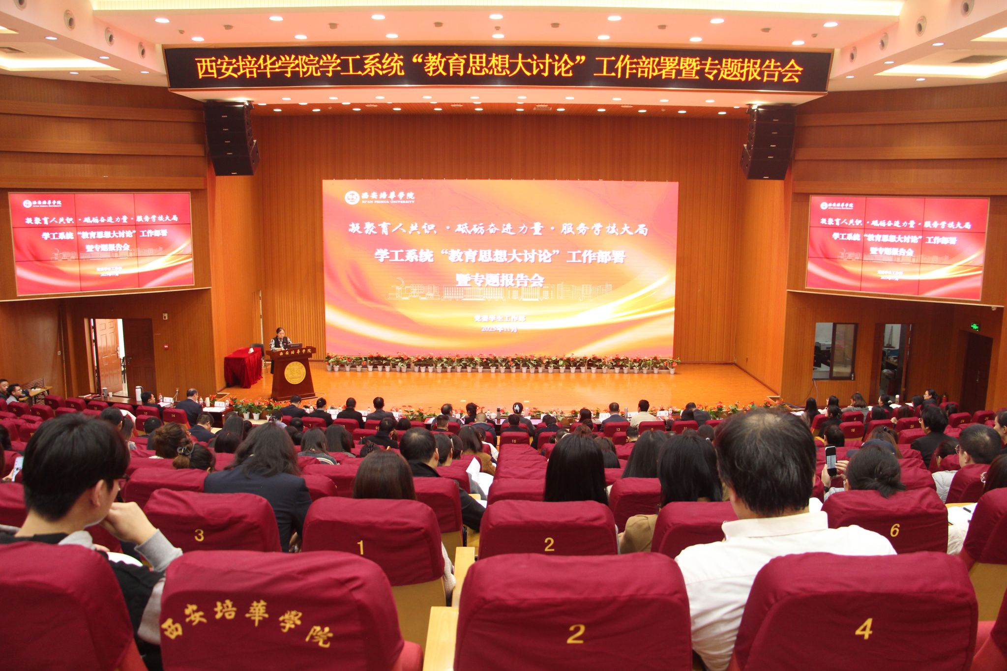 为落实《西安培华学院教育思想大讨论方案》要求,深入推动学校教育教学综合改革,以教育思想大讨论为抓手破解学生工作难题,以审核评估为契机完善学生发展支持体系,走出一条差异化、特色化的高质量发展路径,11月4日,学校在图书馆报告厅召开学工系统“教育思想大讨论”工作部署暨专题报告会。副校长姚文静、战略发展委员会特聘专家,行政部门负责同志、各二级学院党委(总支)书记(副书记)及全体辅导员参会。会议由党委学工部副部长杨媛主持。