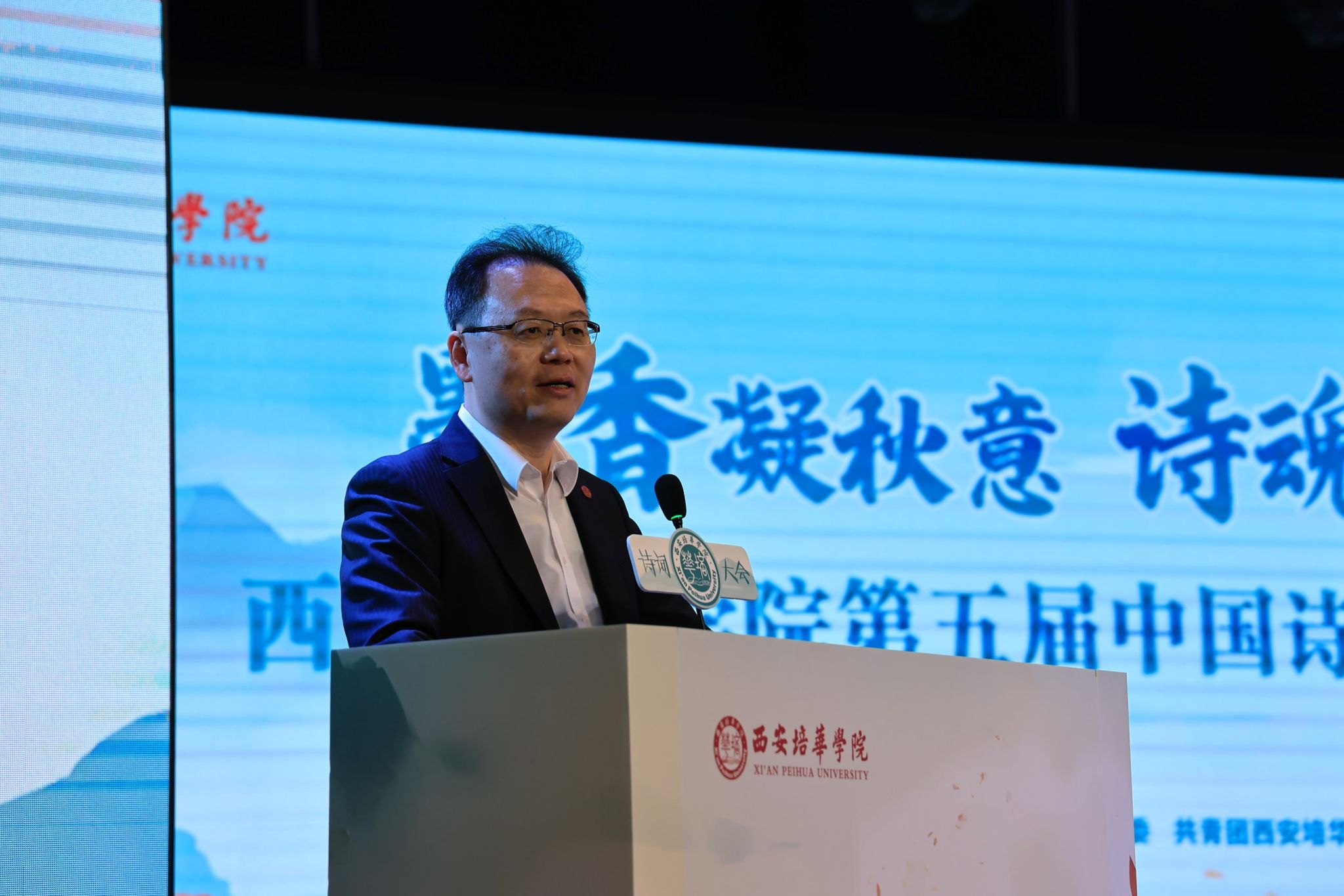陕西省诗词学会会长刘炜评宣布最终比赛结果。他表示,本届大会不仅展现出培华学子深厚的古典诗词功底,更体现了年轻一代对中华优秀传统文化的自觉传承。他强调了诗词在当代育人中的重要作用,鼓励同学们继续在诗海中涵养心灵、提升境界,让古典智慧照进现实生活。