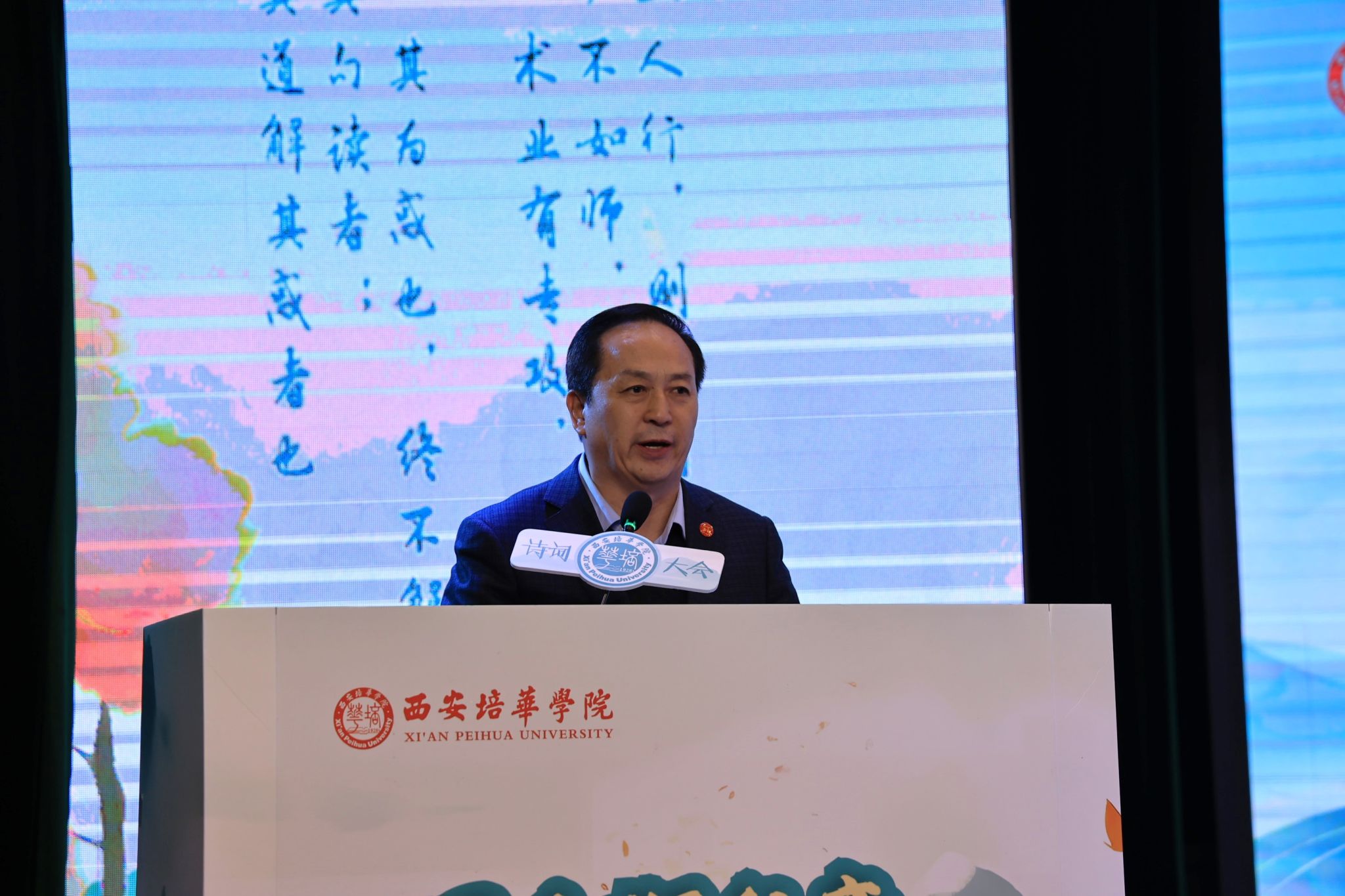 理事长姜波致欢迎词。他阐述了中华诗词作为民族精神瑰宝的永恒价值,并表示,从“培华夏之根”的建校初心,到“育时代新人”的当代追求,培华始终将人文精神的培育放在重要位置,将中华优秀传统文化的传承融入育人全过程。他勉励广大青年以诗为舟,在浩瀚的文化海洋中涵养性情、陶冶情操;以诗为镜,让青春在传统文化的深刻浸润中,焕发绚丽的光彩,成为有底蕴、有格局的时代新人。