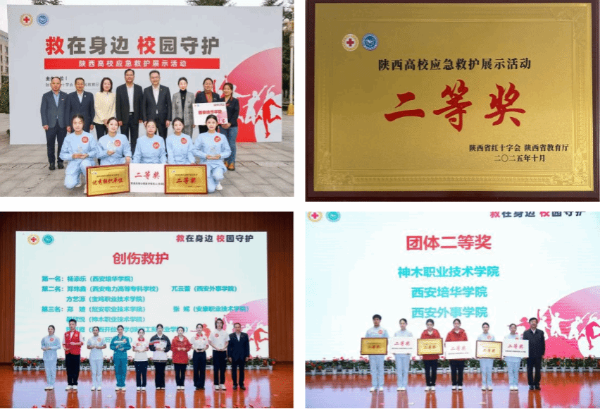 ·2025年陕西高校应急救护展示活动荣获一等奖1项、三等奖2项,团体二等奖、优秀组织单位奖。