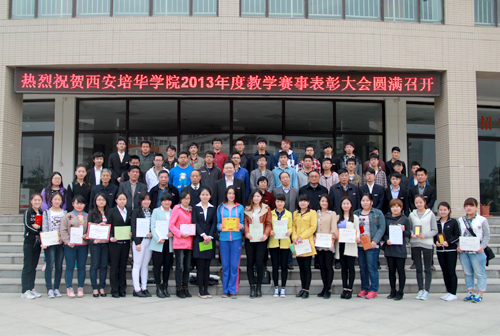 颁奖大会由教务处肖建军处长主持,张栓升副校长了宣读《西安培华学院关于对2013年度教学赛事获奖者进行表彰的决定》,对在2013年度各项教学竞赛中取得了优异成绩的师生予以表彰奖励。表彰的项目共有41大类109项、485人次,其中有134人次在全国59个项目中获奖,为学校赢得了荣誉。
