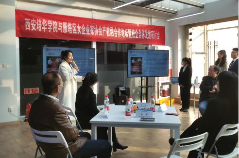 本次“跨界·融合”产教融合应用型人才培养专项研讨会暨校企合作意向洽谈会,促进了西安培华学院与西安女企业家协会的沟通与共建,有利于校企合作、资源共享,拓宽了人才的培养渠道和维度。参加本次会议的雁塔区女企协会员有:雁塔区女企协会会长梁树言、秘书长李国兴,西安卡西尔环保科技股份有限公司总经理陈波,陕西新同方汽车维修保养服务有限公司董事长李亚娟,西安鲜女品牌经营管理有限公司人资总监王峥嵘,陕西慧德青少年心理健康教育研究院副理事长梁冰妍,陕西顺利办信息科技控股有限公司副总经理万楠,西安有温度教育科技有限公司副总经理高翱,西安源初环境科技有限公司总经理蔡月清,西安市莲湖区邱学华门诊部院长邓黎,西安利兹美医疗美容有限公司总经理王立库,中科博文教育科技(西安)有限公司总经理杨鹏,陕西精挑优先供应链管理有限公司总经理苏超,陕西奇兔信息科技有限公司总经理祁昌锋,中正致诚人力资源(陕西)有限公司董事长张耀升,陕西鲁公筑学实业有限公司副总经理周薪,西安旅游协会负责人丁晓阳,西安康姿宝生物科技有限公司总经理徐维静,西安市退役军人服务协会副秘书长王艳,西安旭东升保洁服务公司项目总监赵森林。
